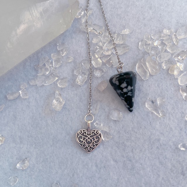白と黒の模様が可愛らしく、犬のダルメシアンの模様に似ている「ダルメシアンジャスパー」です。 思考力や判断力を磨いて、本来の人生の目的へと導いてくれます。 冷静でありながらも強いパワーで毎日お元気に過ごしたい方へお勧めです。 モチーフは美しい絵柄のハートが付いています。 ペンジュラムは、あなたの本当の願いと繋がって導きや答えを教えてくれます。 心の中の迷いを払拭したいときや、幸せの道標の選択のためにお使いください。 人生の道に光を届けます。 世界に一つだけのペンジュラム 【商品詳細】 全長:約19cm クリスタルサイズ:2cm クリスタル:ダルメシアンジャスパー モチーフ:ハート ------ ☆ペンジュラムが手元に来たらまずやって欲しいこと☆ まるでペットを迎え入れるように「これからヨロシクね」と手のひらに乗せて優しく挨拶してください。 ペンジュラムは、使えば使うほどに意思疎通ができ答えがキャッチしやすくなります。 ペンジュラムは「Yes」か「No」で答えてくれますので、まずはあなたにとってのYesとNoの動きを確認しましょう。 【動きの確認の仕方】 ①利き手にペンジュラムを持ちます。 少し縦に揺らします。 ②Yes(はい、◯)になる質問を声に出すか心の中でします。 例えば、「今の私は女性ですか?」など。 しばらくすると、右回転か左回転しはじめます。 その動きがあなたの「Yes」の時のペンジュラムの動きになります。 ③今度は答えがNo(いいえ、×)になる質問をして、さっきと逆回転になるかを確認してください。 初めのうちは小刻みに動いたりなど、回転が分かりづらい場合もあるかもしれませんが、ペンジュラムと仲良くなるように何度か行っているとだんだん分かってきます。 あなたにとっての「Yes」or「No」の動き(サイン)を見つけて、クリスタルと共振共鳴して素敵な未来を創造していってください。 *お取り扱いには充分にご注意ください