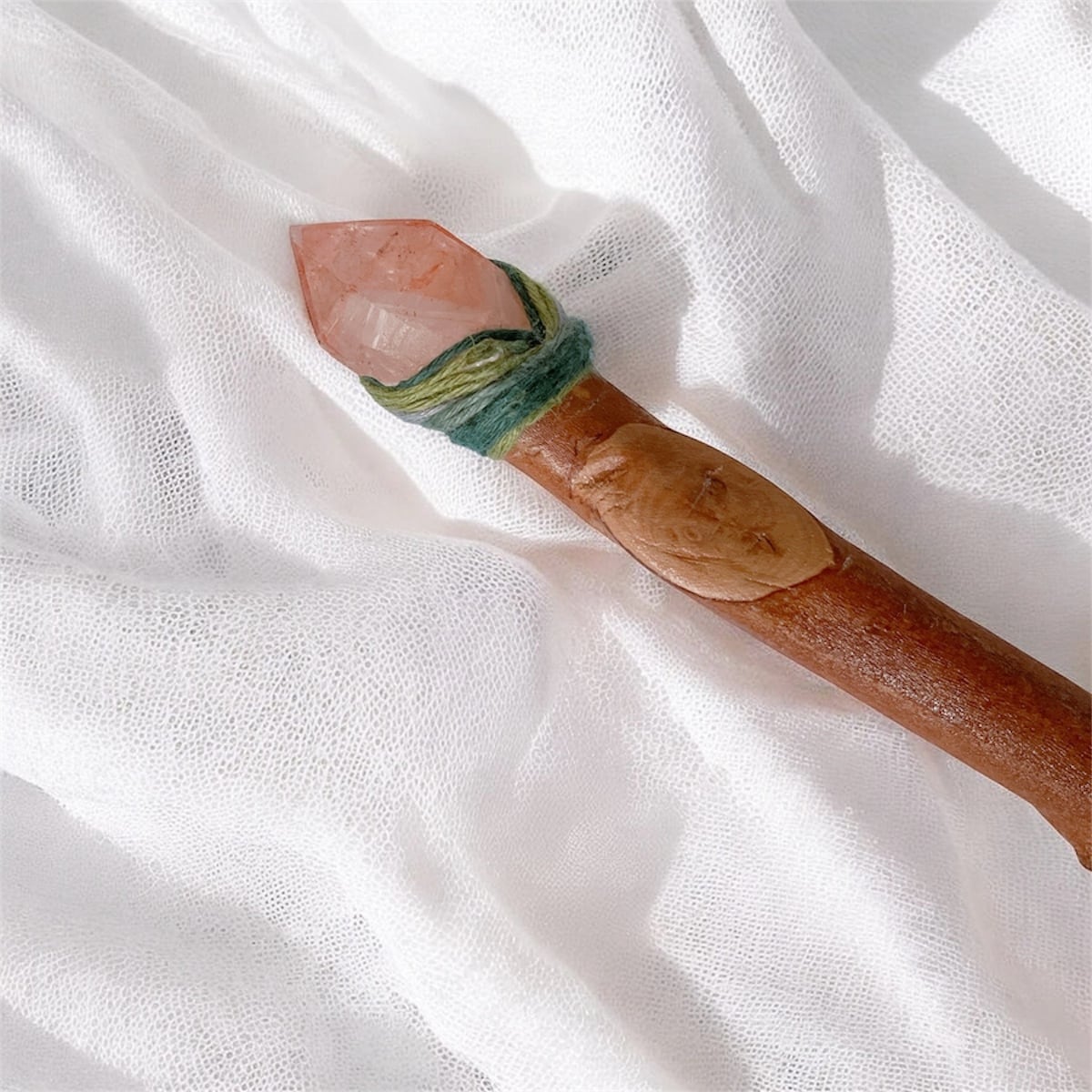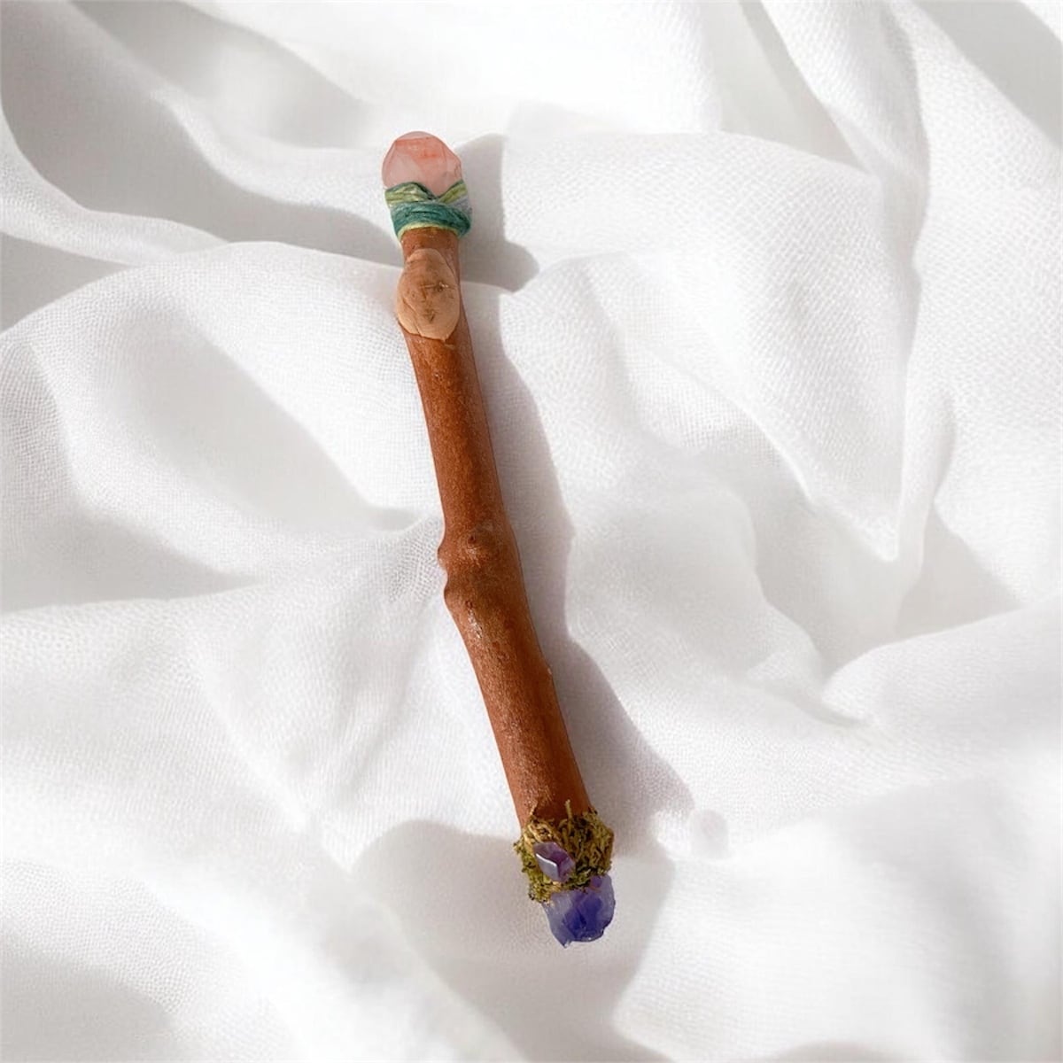 とても手にフィットするワンドの枝はレモンユーカリで、空間や心身の浄化、そして再生と成長を意味する聖なる木です。