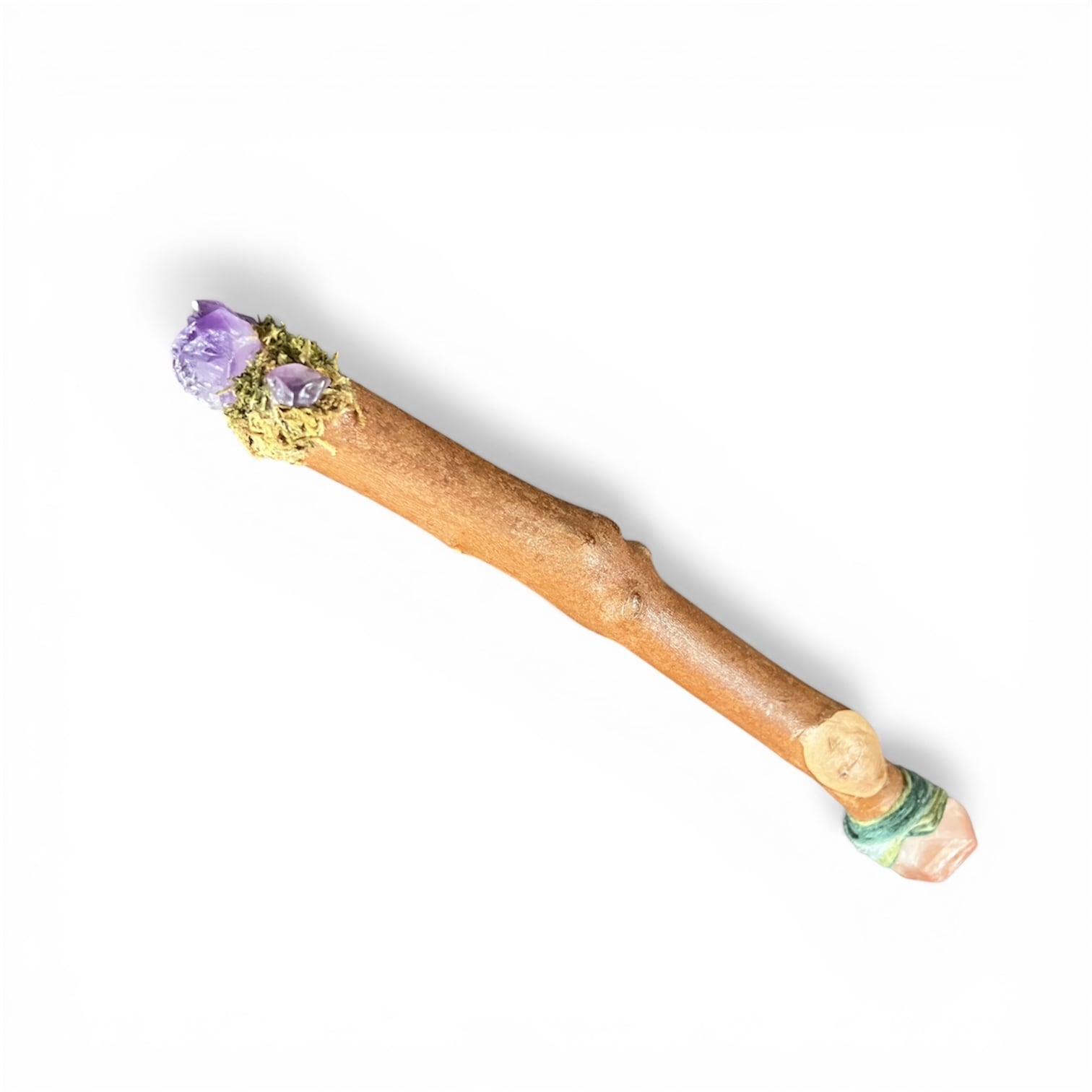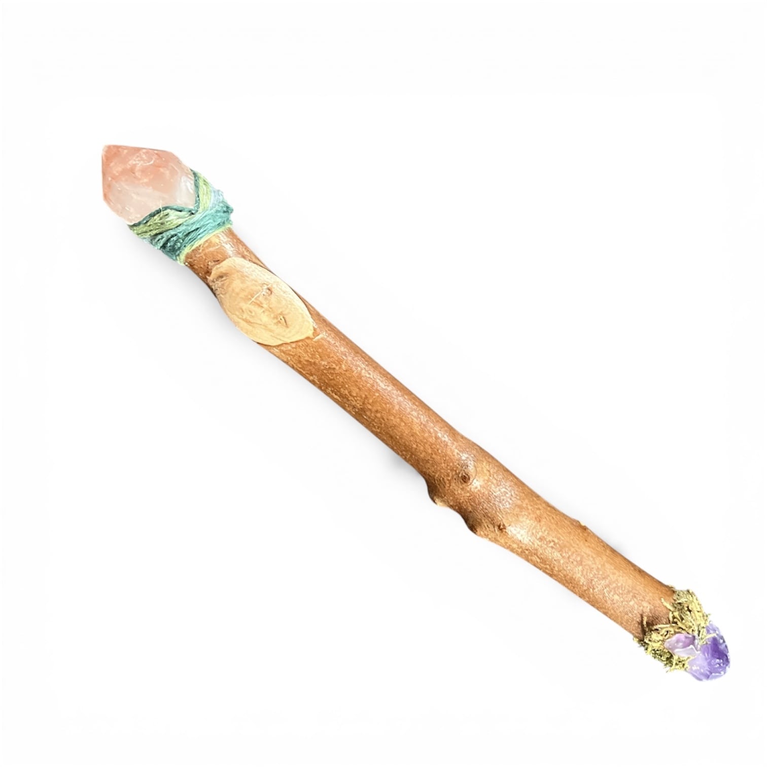 太めのピンクレムリアンシードとアメジストのワンドです。