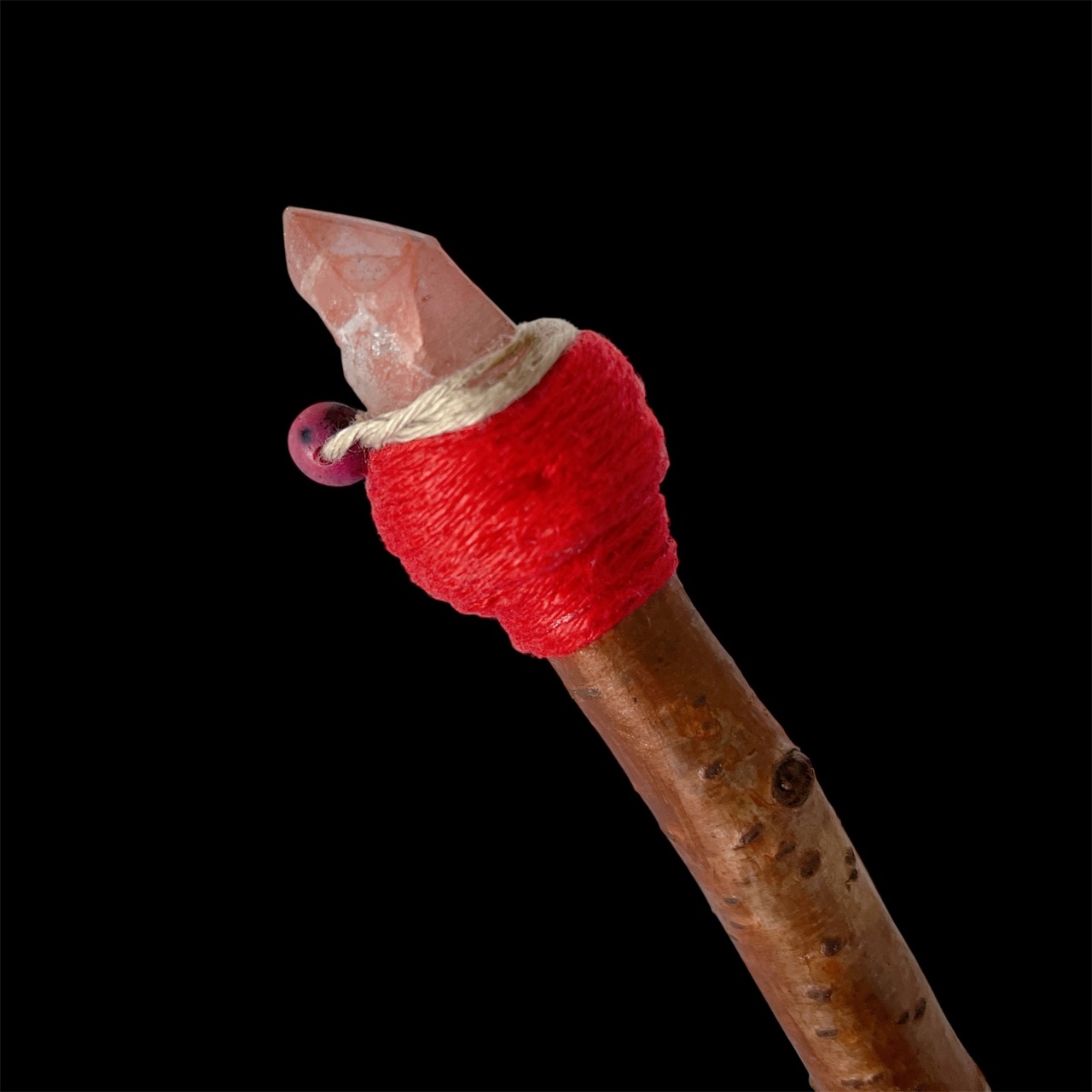 その反対側にはピンクレムリアンシードがつけてあり、底につけられたピンクの玉は、アマゾンのシャーマンからのジャングルの貴重な木の実です。