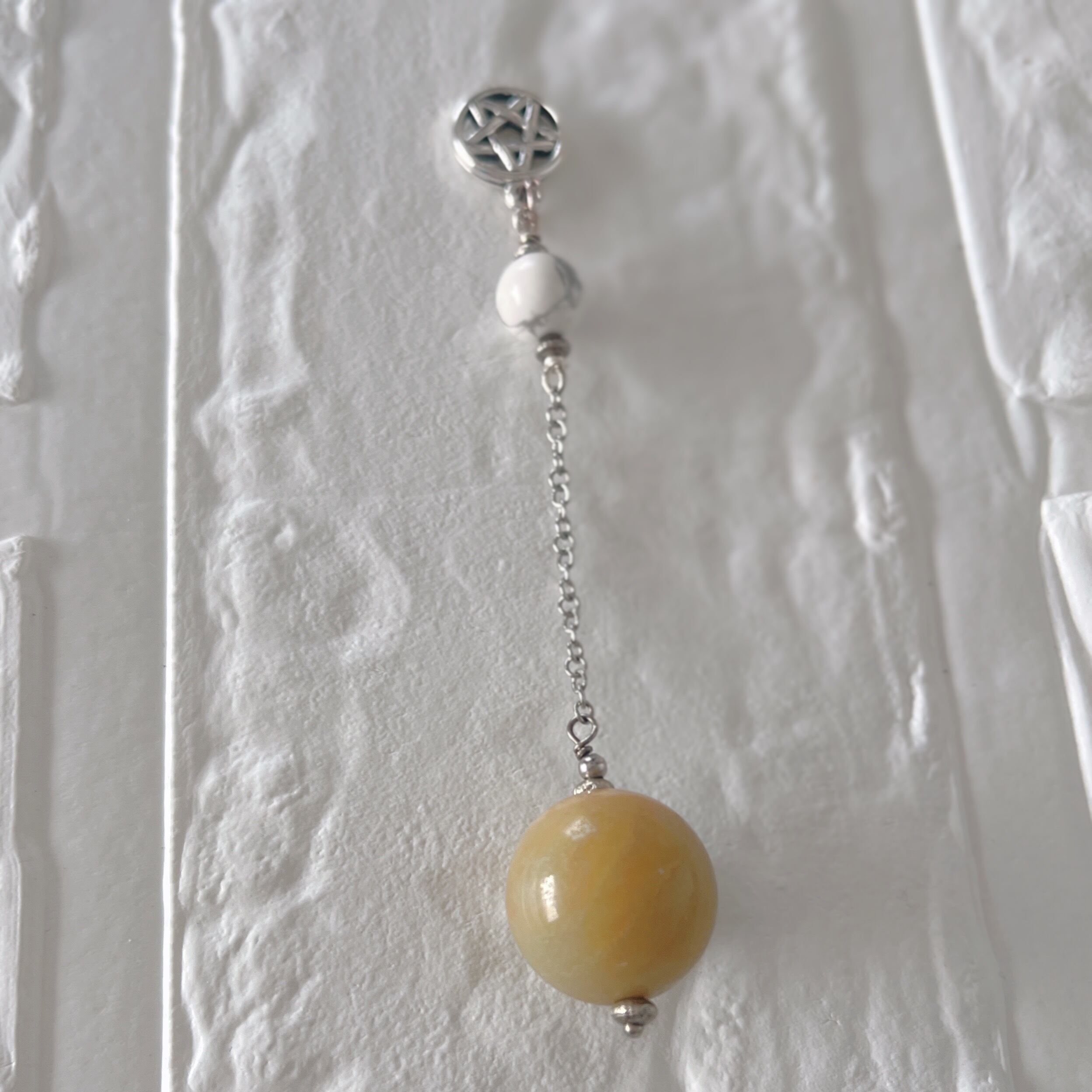 ハウライトと星のラッキーアイテムが付いた、少し小ぶりでとっても愛着の湧くペンジュラムです。